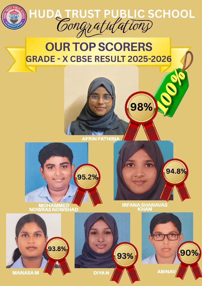 Huda Trust Public School was established way back in 1993. It is run by Huda Trust, a non-profit charitable Organization. The school is situated in a calm, serene and spacious place at Kavarattu. It is easily accessible, only one km from N.H.47 at Narakathara Junction. The nearest railway station is Haripad. The principal aim of the institution is to mould educationally talented, ethically upright, physically fit and mentally secular citizens and to provide quality CBSE education especially to the marginalized .